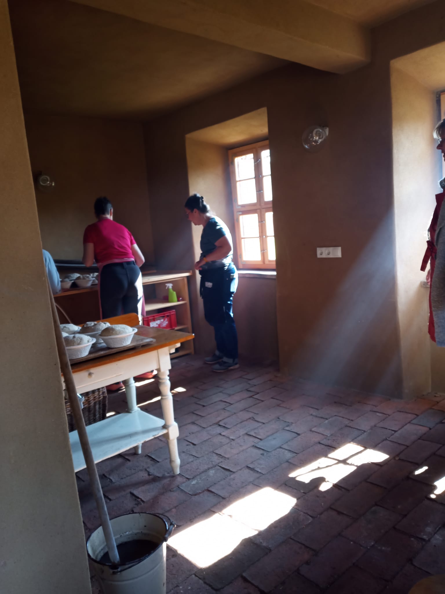 Unsere Backgruppe trifft sich am Lehmbackofen.
